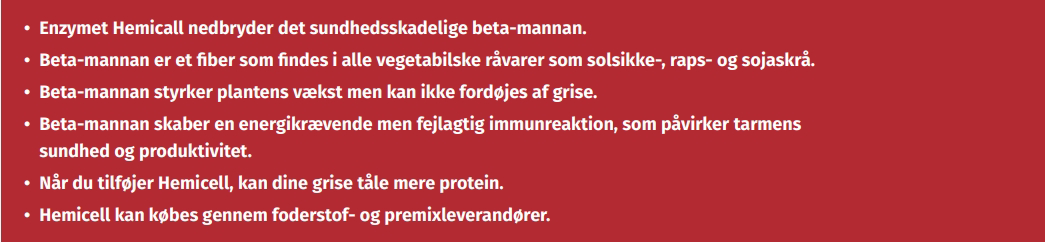 Enzymet Hemicell understøtter grisens immunsystem og det styrker tarmsundheden, giver bedre næringsstofbalance og dermed en gris, der trives og er mindre agressiv.