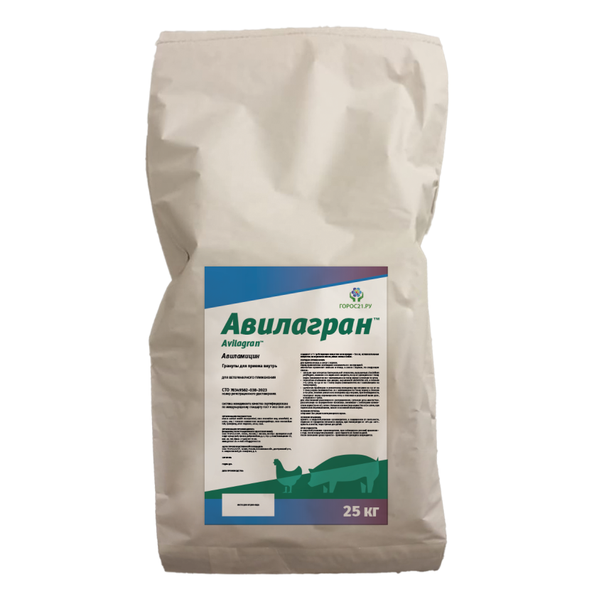 - авиламицин (в пересчете на активный авиламицин) – 100 мг в 1 г продукта