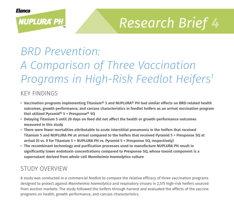 To learn more about how NUPLURA delivers a fast, smooth, powerful and convenient vaccination to prevent BRD, contact your herd health veterinarian or Elanco representative. To find a representative, please call 1-800-364-2014.
